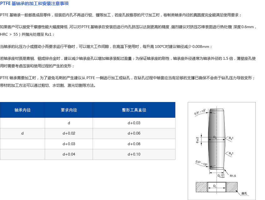 PTFE基軸承的加工和安裝注意事項